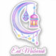 Happy Eid Mubarak Sticker with Moon and stars , eid al-fitr Sticker , eid al-adha sticker With lanterns.