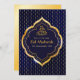 Blue and gold eid mubarak greetings card designed to be quickly and easily customised to your specifics.