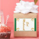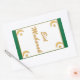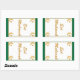 Eid al Fitr is a Muslim holiday that celebrates the conclusion of Ramadan. This sticker has green, gold and white borders surrounding gold crescent moons and star along with the gold text Eid Mubarak which means Blessed Eid.