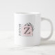 Customizable Eid Mubarak & Personalized Initial Jumbo Coffee Mug | Modern Mosque & Monogram Pink Line Art | Unique Muslim Holiday Gift 566g.