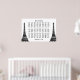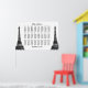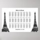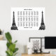 This seating chart features black silhouettes of the Paris Eiffel Tower. Up to 24 tables with up to 12 names per table, for a total of up to 288 guest names. Click "customise" to move tables, change fonts, etc.