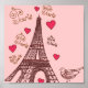 Cute design with the Eiffel Tower, a little bird, lots of hearts and the work "Paris" in a curvy cute font