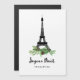 These elegant holiday magnetic cards say "Joyeux Noël" in French black modern typography, along with an image of the Eiffel Tower surrounded by green Christmas pine branches and pine cones. Personalise with your name. We have used some art from LABFcreations.
