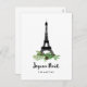 These elegant holiday postcards say "Joyeux Noël" in French black modern typography, along with an image of the Eiffel Tower surrounded by green Christmas pine branches and pine cones. Personalise the back with your own message. We have used some art from LABFcreations.