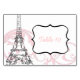 Soft pink swirling scrolls are the background for the Eiffel tower, the world's most recognisable landmark from Paris, the world's most romantic city!  The perfect invitations, labels, and cards if you're going to be getting married in Paris, or if you have a Paris themed wedding! We've created envelopes, mailing labels, and much more so everything you need matches.  We show it on white, but you can easily change the background colour to match your wedding colours.  Any of the text may be altered or removed by clicking on Customise it.