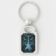 Eiffel Tower Blue Floral Swirls Metal Keychain