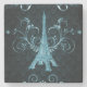 Eiffel Tower Blue Floral Swirls Stone Coaster