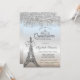 Eiffel Tower,Bow,Tiara,Drips Silver Quinceañera Invitation