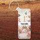 A keychain with a stylised Eiffel tower image surrounded by pretty butterflies and delicate garden flowers.