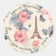 Eiffel Tower Butterfly and Roses Pattern - Address Classic Round Sticker