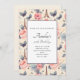Birthday invitation with an elegant pattern. Pink roses, blue-grey butterflies and an Eiffel tower. A French themed pattern.