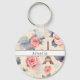 Keychain with an elegant pattern. Pink roses, blue-grey butterflies and an Eiffel tower. A French themed pattern.
