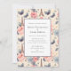 Wedding invitation with an elegant pattern. Pink roses, blue-grey butterflies and an Eiffel tower. A French themed pattern.