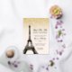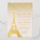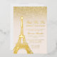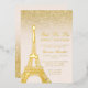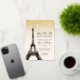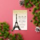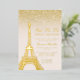 A modern, chic and glamourous sweet sixteen with a hand drawn gold glitter french Paris theme Eiffel Tower with gold glitter ombre gradient sparkles on an editable pastel blush pink background with real gold foil.
