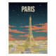 The image depicts a nighttime view of the Eiffel Tower in Paris, France. The iconic tower stands tall against a backdrop of a starry sky with a few wispy clouds in shades of orange and pink. The city lights twinkle below, creating a warm and inviting atmosphere. The image is rendered in a pixelated style, giving it a retro and nostalgic feel.