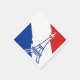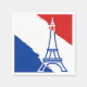 Festive Bastille Day design with the Eiffel Tower over colours of the French flag. Image from vecteezy.com.