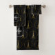 Eiffel Tower gold glitter sparkles black Monogram Bath Towel Set