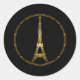 Eiffel Tower gold glitter sparkles on Black Classic Round Sticker