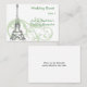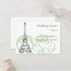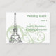 These wonderful place cards make excellent wedding reception table markers so your guests know exactly where to be seated. They are part of the matching set of invitations and labels with the fresh green scrolls with the Eiffel Tower drawing.