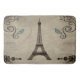 Add an elegant touch to your bathroom decor with this Parisian theme bathmat design. This bathmat features the Eiffel Tower against a neutral grunge background and is adorned with elegant flourishes and teal butterflies for a perfect vintage look. Perfect for those who like a Paris theme touch to their bath decor.