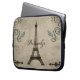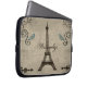 Protect your laptop while you're on the go with this alluring sleeve design featuring a grunge background adorned with the Eiffel Tower, swirls and butterflies in teal. Customizable text allows you to alter fonts, change text colors and sizes as you wish. Personalize for yourself or makes a great gift.
