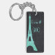 Chic black damask hotel, resort key chain done in a Paris theme, with graphics of an aqua glitter looking Eiffel tower. Personalise the aqua coloured text to suit your resort's needs.