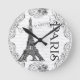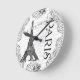 Black and white illustration of the Eiffel Tower and fancy scrolls. Paris is written in strong print on the side. Lovely design for gifts and cards.