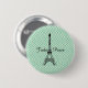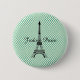 Simple cute and elegant button with black Eiffel tower Paris on green dotted pattern. Text: 'J'adore Paris'. Created with a smile by iolantesdesigns :-)!