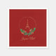 Napkins with the Eiffel Tower surrounded by an evergreen Christmas wreath. The words "Joyeux Noel"can be changed for custom design