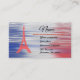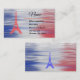 Red Eiffel tower with blue Eiffel Tower in the back.