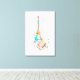 Artistic impression of the Eiffel Tower with an artist's pallet, and paint splattered Eiffel Tower and cherry blossoms on stretched canvas. Measures 24"x36".