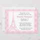 Eiffel Tower Paris Birthday Invitations with a pink tower and pink background. Great for any type of party with a Paris theme. Customise with your party details.