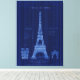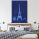 Blue Cobalt Blue Blueprint looking canvas print with light horizontal grain marks. The Eiffel Tower Paris France. Great Wall decor. Enjoy and thanks for looking.