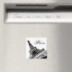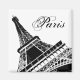 France souvenir magnet with black and white illustration of the Eiffel Tower in Paris, France.