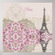 vintage Eiffel tower postcard w/pink flowers reflection
