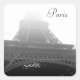 Cute stickers with the Eiffel tower on it in black and white that appears to be fading away in fog.