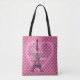 Stylish tote with black Eiffel tower on pink heart and all-over blue hearts on bright pink background. Text 'Paris, C'est moi'. Created with a smile by iolantesdesigns :-)!