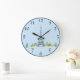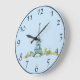 Eiffel Tower Pen and Ink Sketch on Blue Large Clock