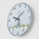 Eiffel Tower Pen and Ink Sketch on Grey/Blue Large Clock
