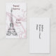 These wonderful business cards are great for wedding planners or travel agents and they make excellent wedding reception table markers so your guests know exactly where to be seated. They are part of the matching set of invitations and labels with the fresh pink scrolls with the Eiffel Tower drawing.