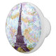 This ceramic drawer knob is called, "Eiffel Tower Pointillism", by me, Kristie Hubler, extracted from my painting, "Paris Eiffel Tower inspired pointillism landscape". Each dot when clustered makes up an overall colour using "colour reflection"from the colours of objects, buildings, people, and the landscape around them. The technique was popularised by Georges Seurat, who also has a painting by the same name, only my inspiration comes from photos of Paris, France, the Eiffel Tower, and my visit inside the Paris Las Vegas casino and resort, seeing the interior shop facades. Its the Eiffel Tower, the sky, clouds, and grass. Love is in the air! The sky is pastel colours of pinks, sky blue, lilac,gold and mint green, with yellow greens for grass, and various shades of grey and black mixed with blue violet iris and brown for the Eiffel Tower.