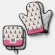 Eiffel Tower Polka Dots & Hearts Pattern Oven Mitt & Pot Holder Set
