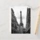 Postcard featuring a photo of a Parisian street and the Eiffel Tower.