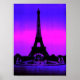 The Eiffel Tower, a French landmark, with a pink and purple backround