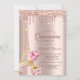 Eiffel Tower Present Balloons Rose Gold Drips Invitation