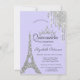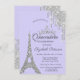 Eiffel Tower,Silver Drips Lavander Quinceañera Invitation