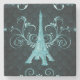 Eiffel Tower Teal Floral Swirls Stone Coaster