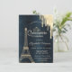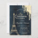 Eiffel Tower,Tiara,Drips Dark Blue Quinceañera Invitation