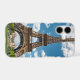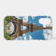 Paris France Eiffel Tower seen from Champ de Mars park with green lawn and visitors under sunny sky