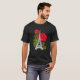 I give wanted to give this a 4 instead of a 5 because these Basic DARK T0shirts run unexpectedly SLIM or Narrow. Which is great if you do not have a potbelly, but I have a paunch. It isn't the shirt's fault that I've got a beer belly. The design and shirt itself is a quality cotton shirt. The color is more of a deep purple, but still a very pretty color. The Basic DARK T-shirts run a bit SLIMMER than the Basic Ts. The neck is a fraction narrower (or seems to be narrower) also. I'm a paunchy middle-aged woman and my neck is 12 inches (31cm) thick and the neckline fell about the same as in the photo of the man, and I had the desire to tug it a bit. So if you're a thick necked man or like loose shirts, be aware these are slimmer shirts. Once I get rid of my lockdown paunch it'll look great. The shirt washed well in cold water with no apparent bleeding. We don't have a dryer, so it hung dry. Did not shrink. Love the colors and the design. The design looks smaller on my shirt than it does on the model on-line. But still, it looks good on the shirt. The printing looks as it does on the model, just the size seems fractionally smaller. Washed garment in cold water, hung dry and design appeared unaffected.